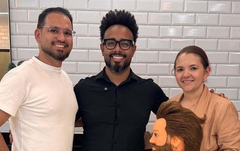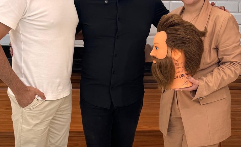 Ao longo dessa trajetória, já tivemos a honra de receber em nosso espaço grandes nomes da barbearia moderna. Entre eles, Juarez Leite e Eduardo Muller, uns dos maiores visagistas do país, que trouxeram ainda mais inspiração e aprendizado para nossa equipe.