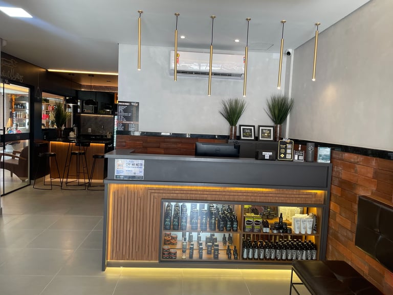 Tudo foi planejado com carinho e atenção aos detalhes, incluindo uma copa e uma área de apoio para os profissionais, tornando a Jocelino Medeiros Barbearia & Espaço Cláudia Martins uma referência de excelência, conforto e sofisticação.